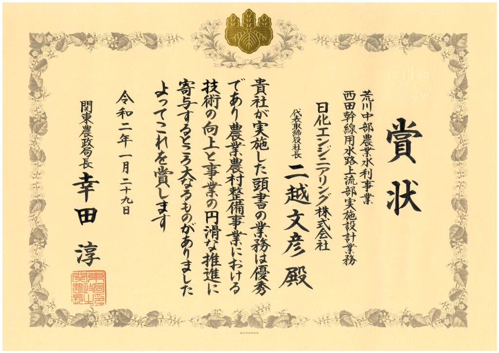 業務名:荒川中部農業⽔利事業⻄⽥幹線用⽔路上流部実施設計業務